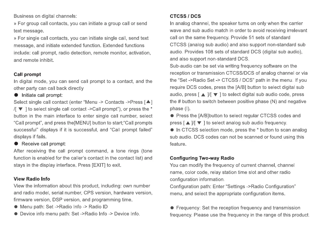 In digital mode, you can send call prompt to a contact, and the