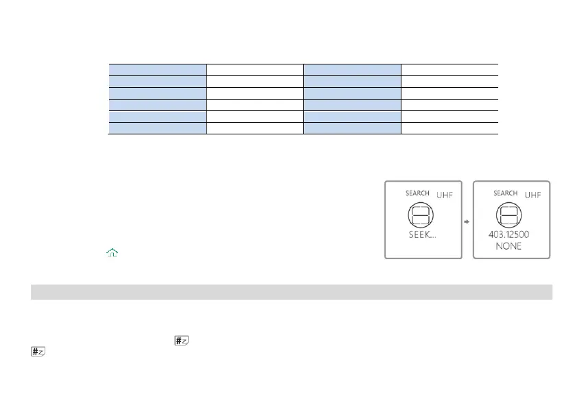 Note: During frequency Search, press the # key on the radio to switch between UHF or VHF