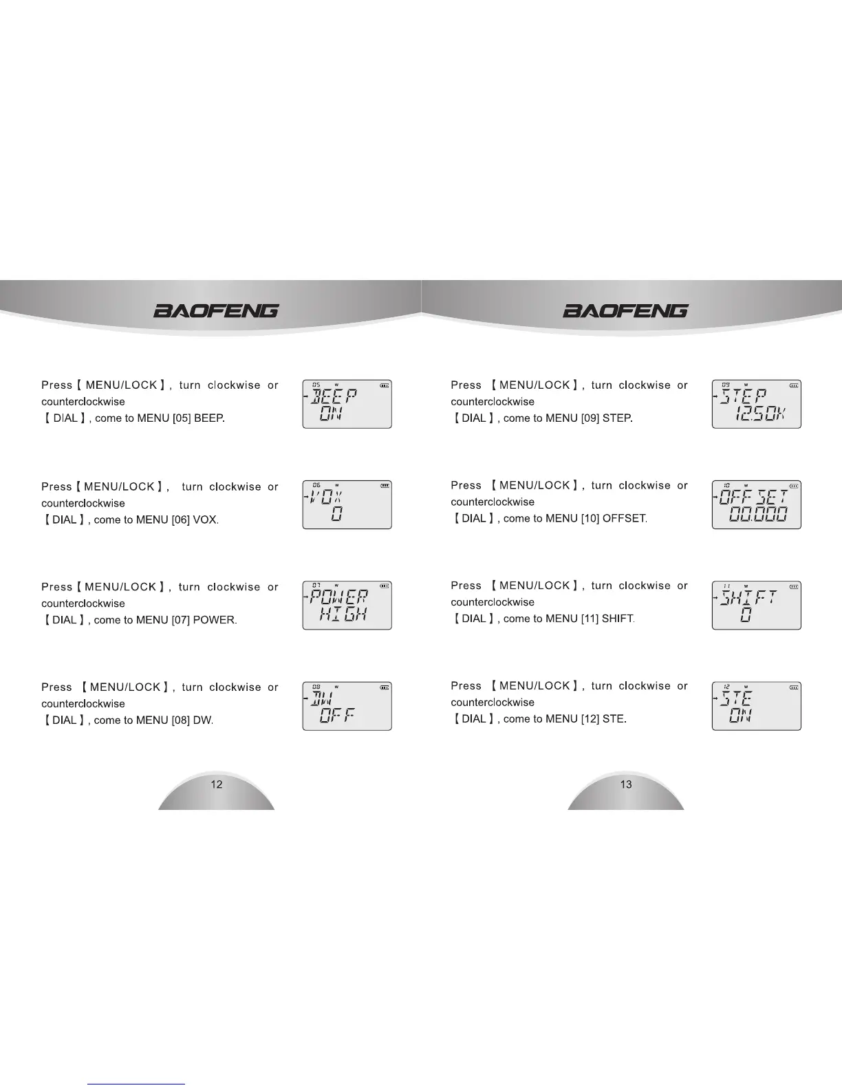 Baofeng UV-3R plus - Menu Settings: Beep, VOX, Power, DW