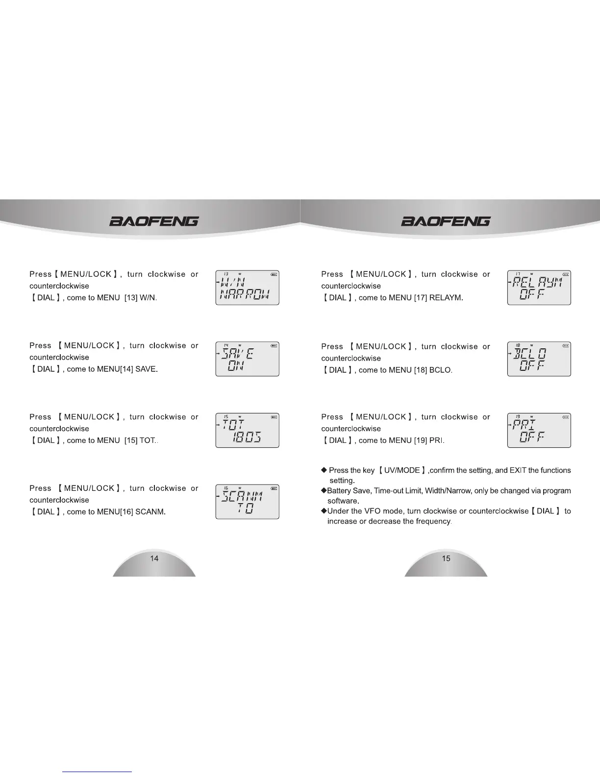 Baofeng UV-3R plus - Menu Settings: Offset, Shift, Save, TOT