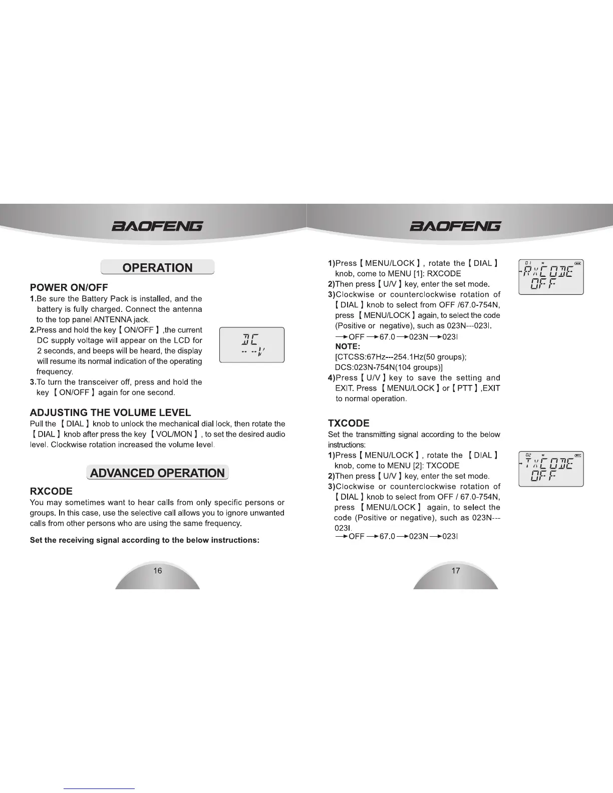 Baofeng UV-3R plus - Advanced Operation: RXCODE; RXCODE Configuration