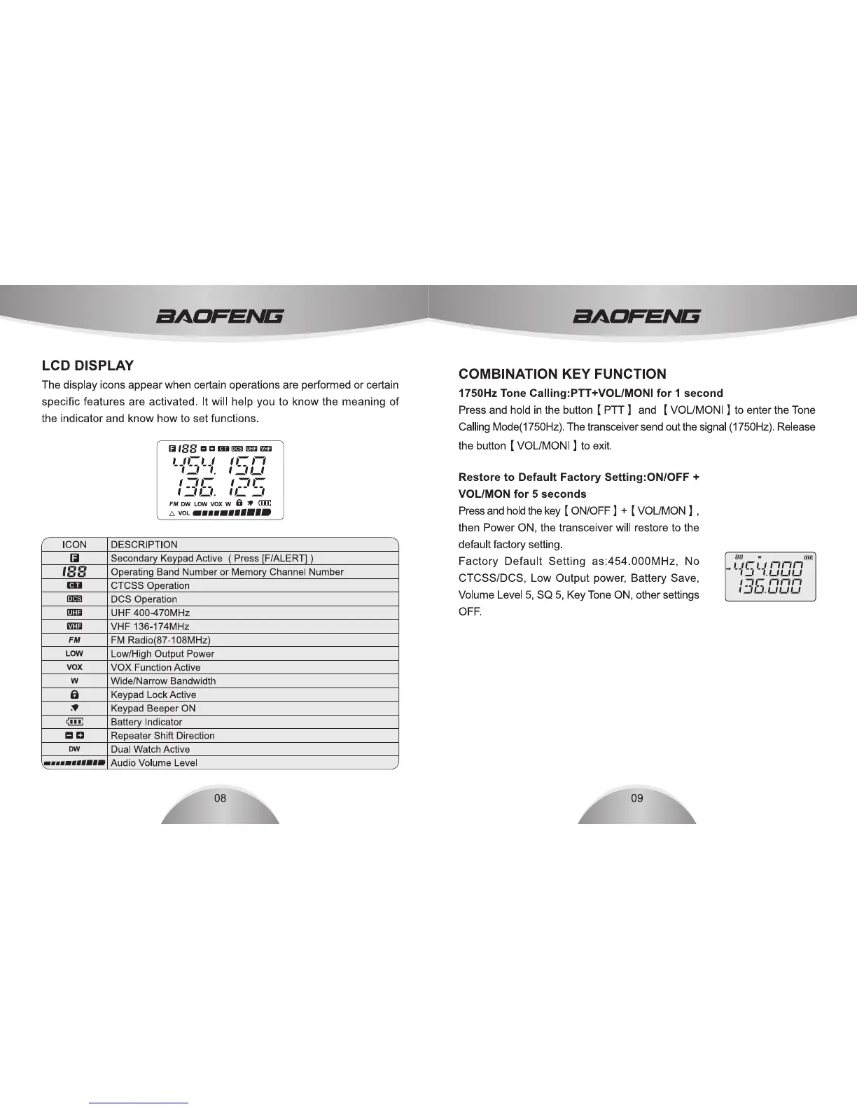 Baofeng UV-3R plus - LCD Display; Combination Key Function