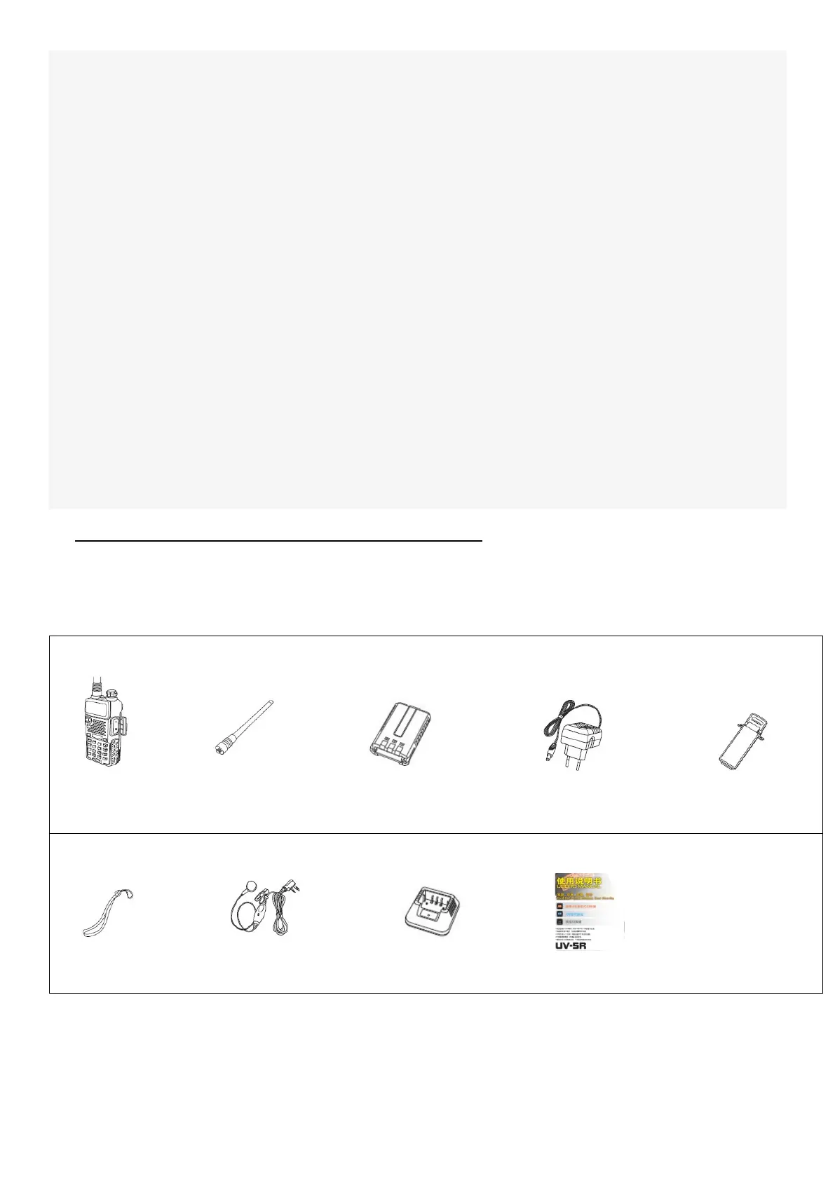 Carefully unpack the transceiver. We recommend that you identify the items listed in the following