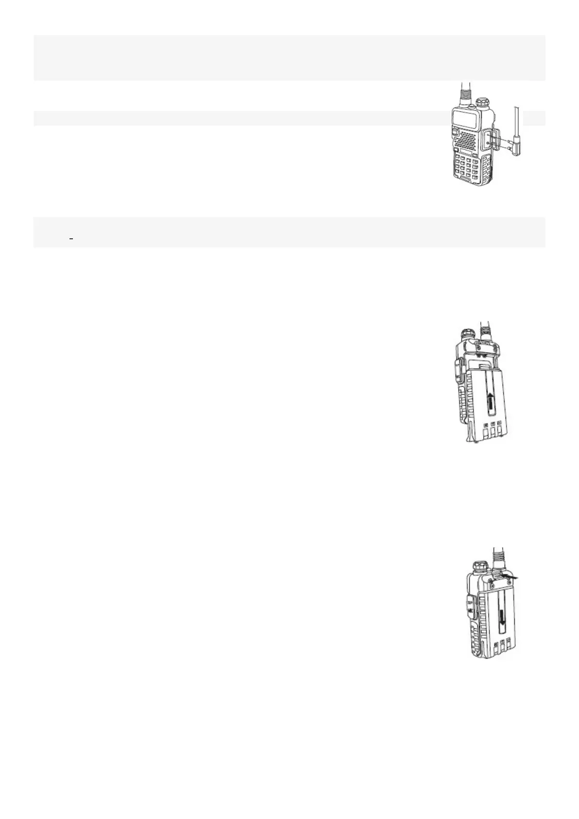 -Slide down the battery for about 1 to 2 centimeters, and then remove the battery from the radio’s