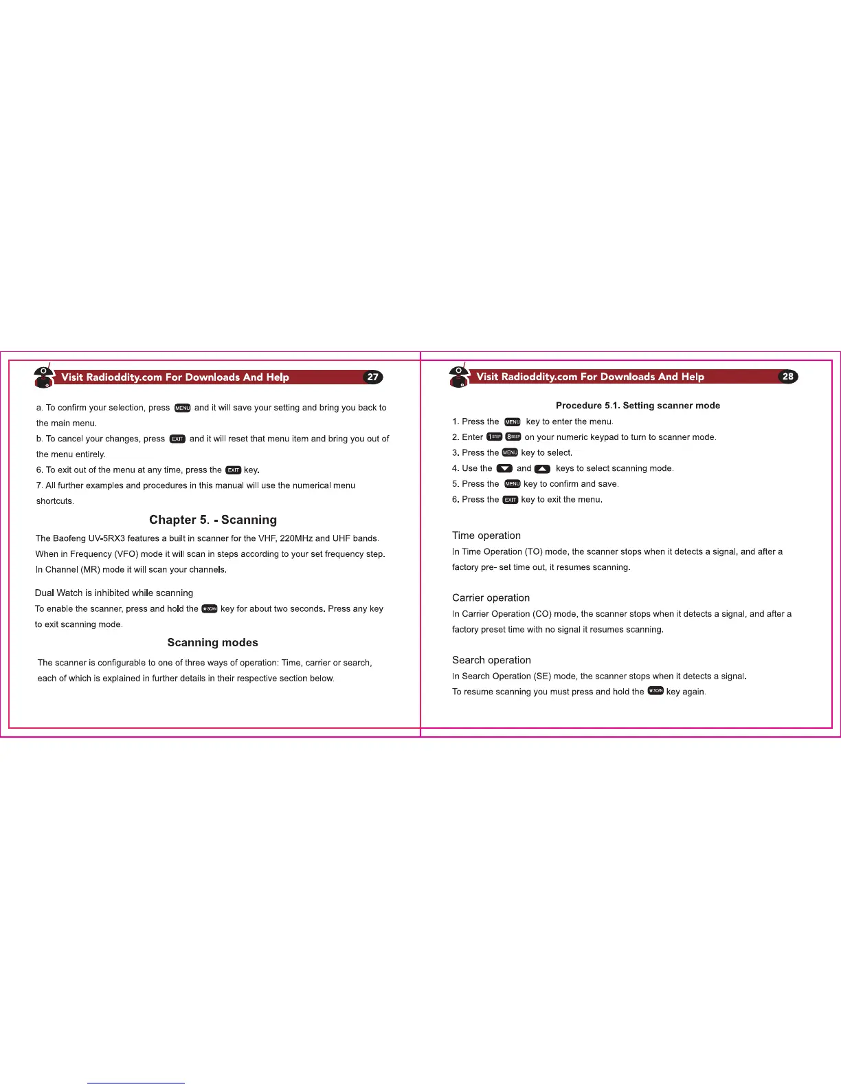 Baofeng UV-5RX3 - Scanning; Scanning Modes; Setting Scanner Mode; Time Operation