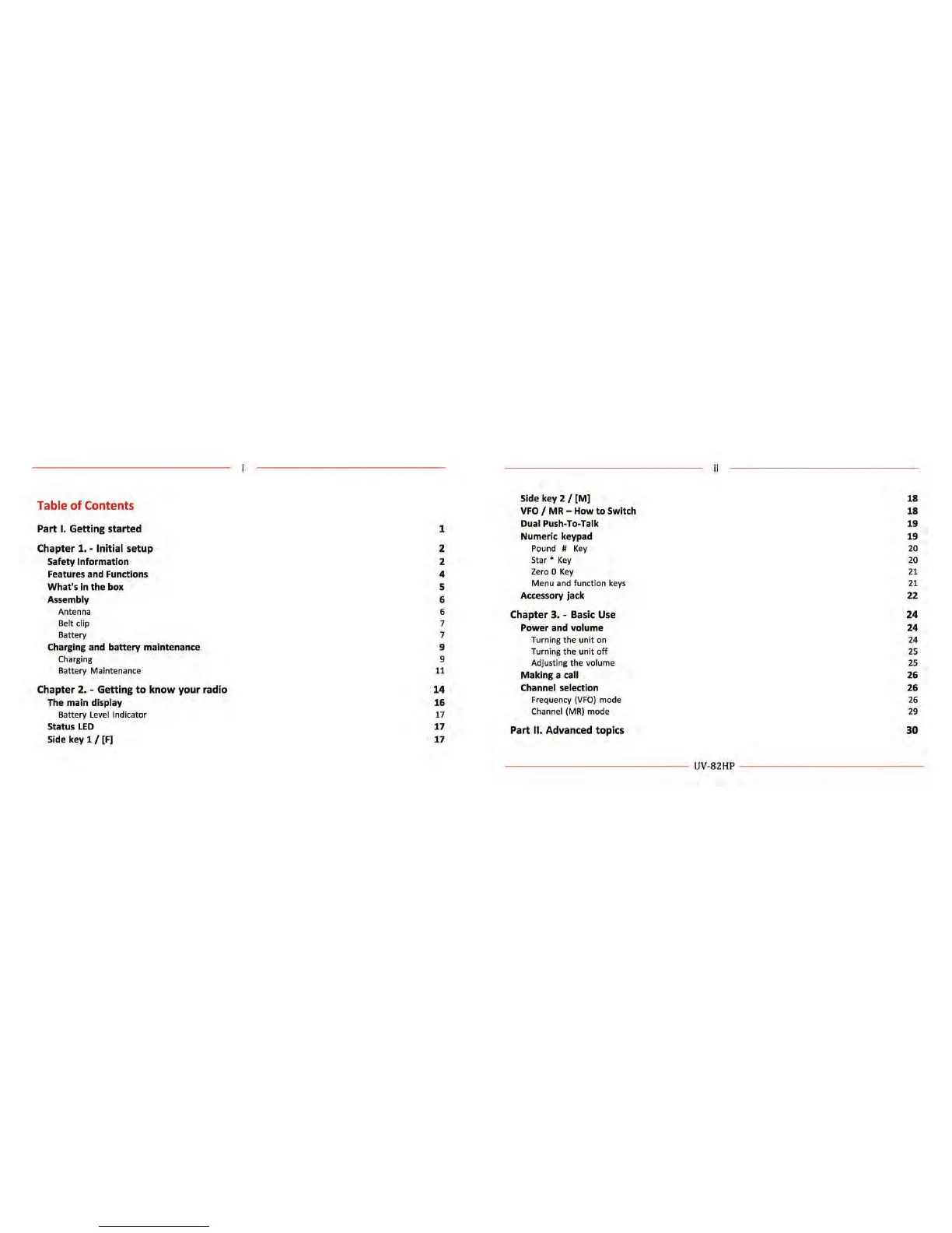 Baofeng UV-82HP - Table of Contents