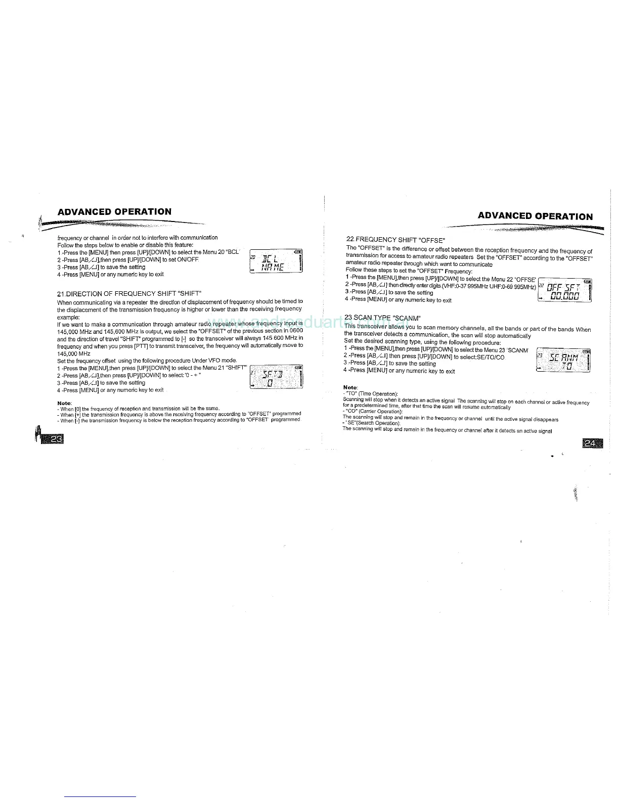 Baofeng UV-85 - Frequency Shift and Scan Type Settings