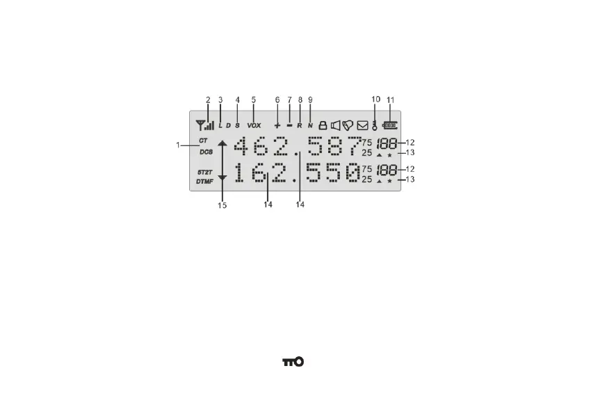 9. Narrow bandwidth: N = narrow. When the wide (W) bandwidth is activated, no icon is displayed.