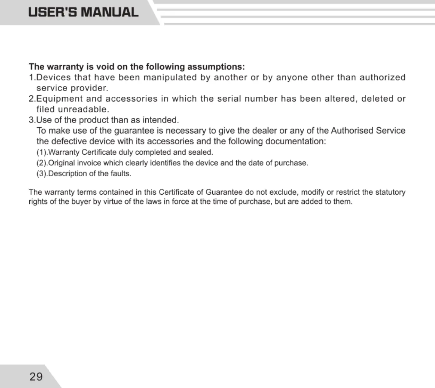 (1)Waranty