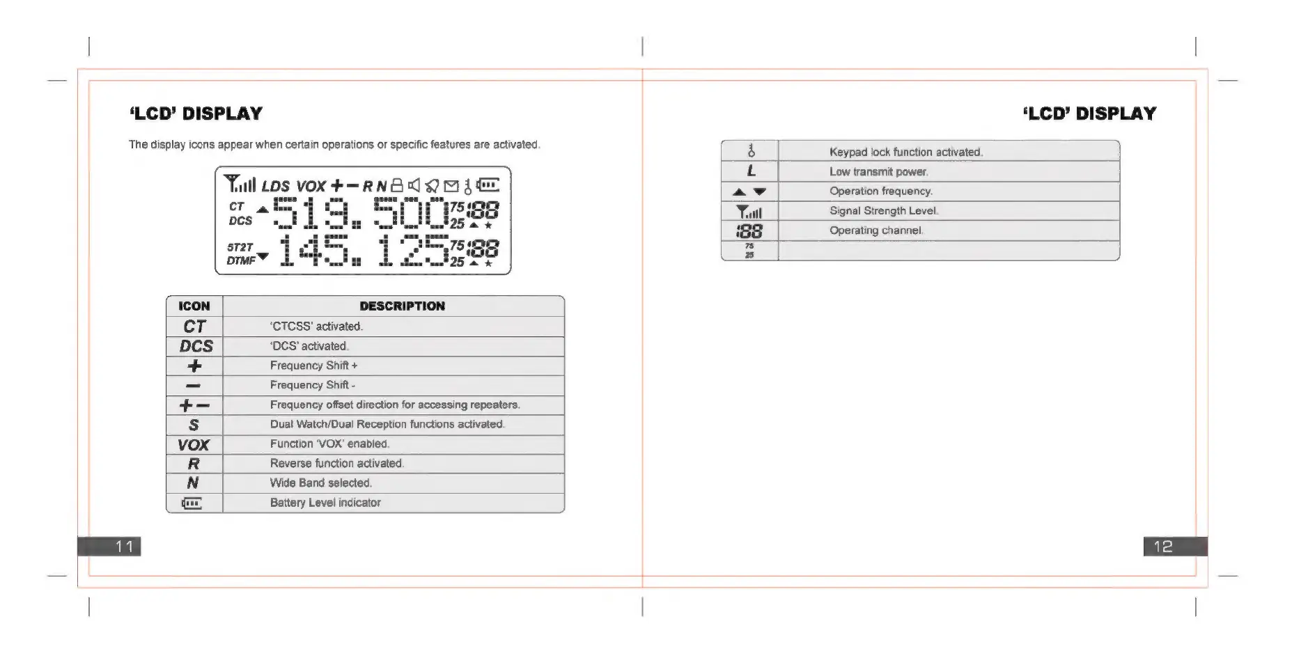 Baofeng UV82 - LCD Display Icons; Icon Definitions; LCD Display Indicators; Indicator Explanations