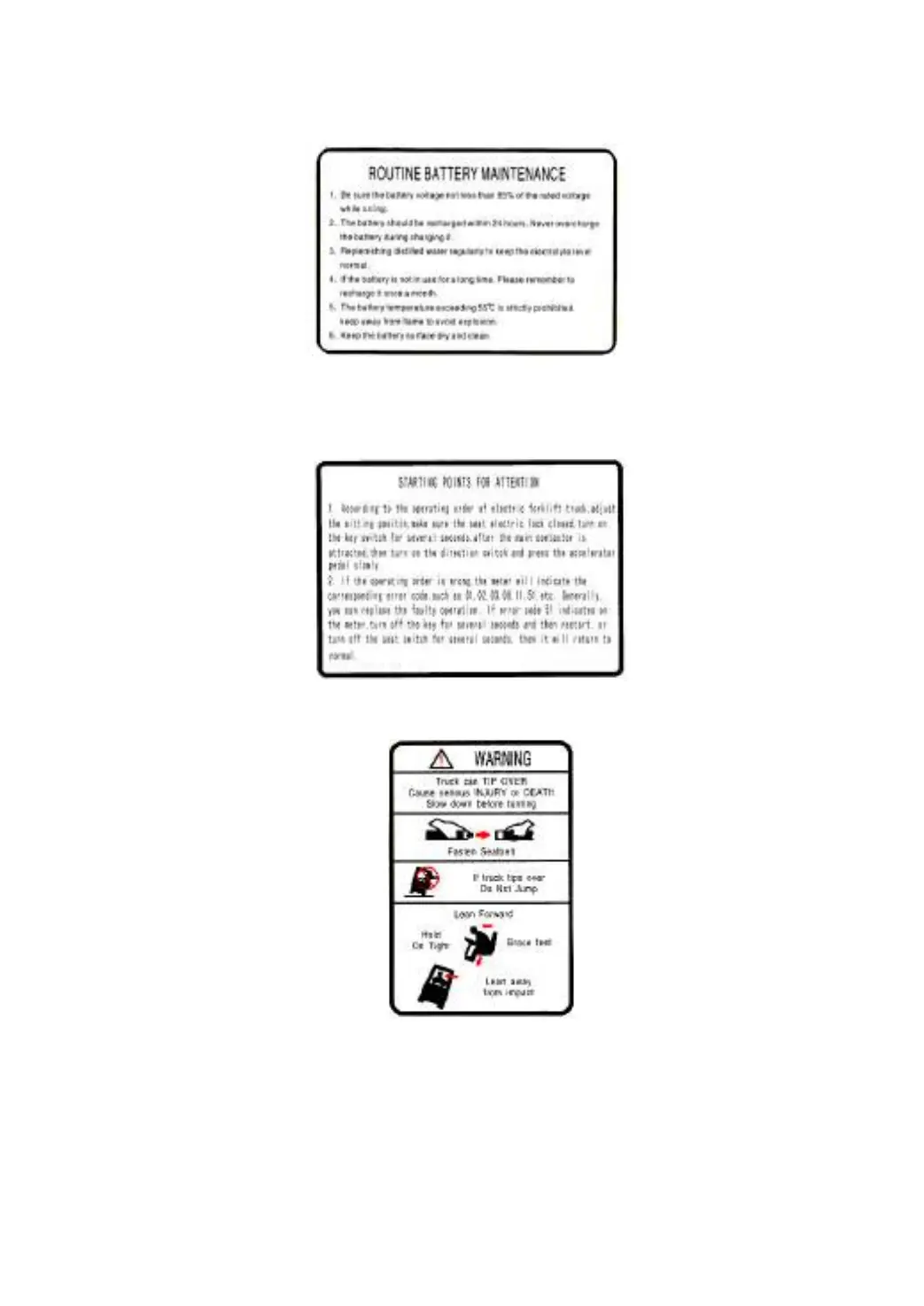 (18) Faulty starting decal (electric forklift truck witch DC motor)