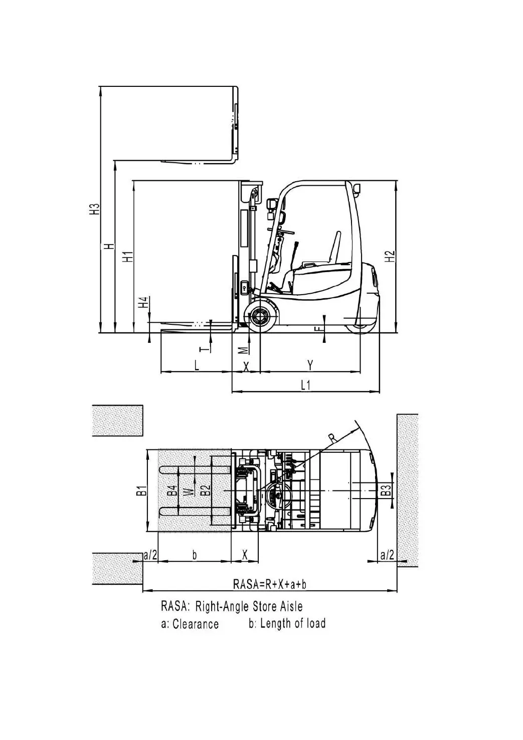 External view of three-wheel electric forklift truck