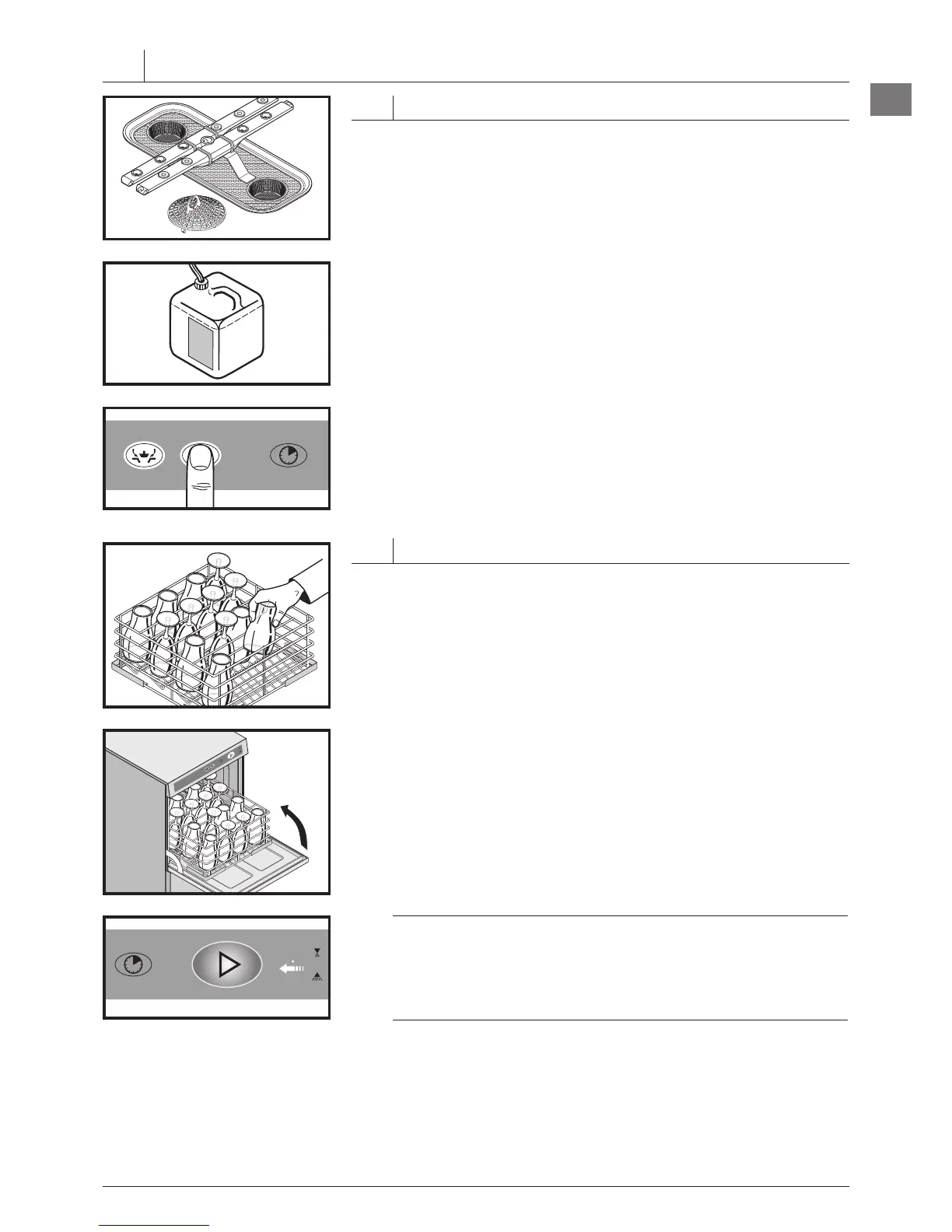 Check level of detergent and rinse aid containers.