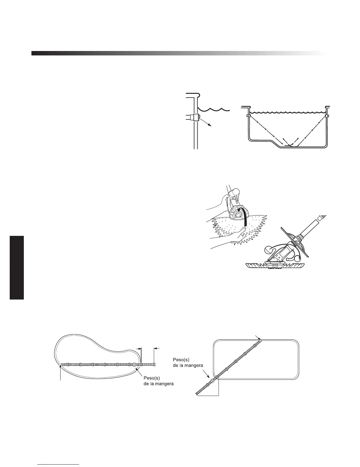 1. Aspire la piscina en forma manual si hay exceso de desechos y asegúrese de que el filtro de la pis-