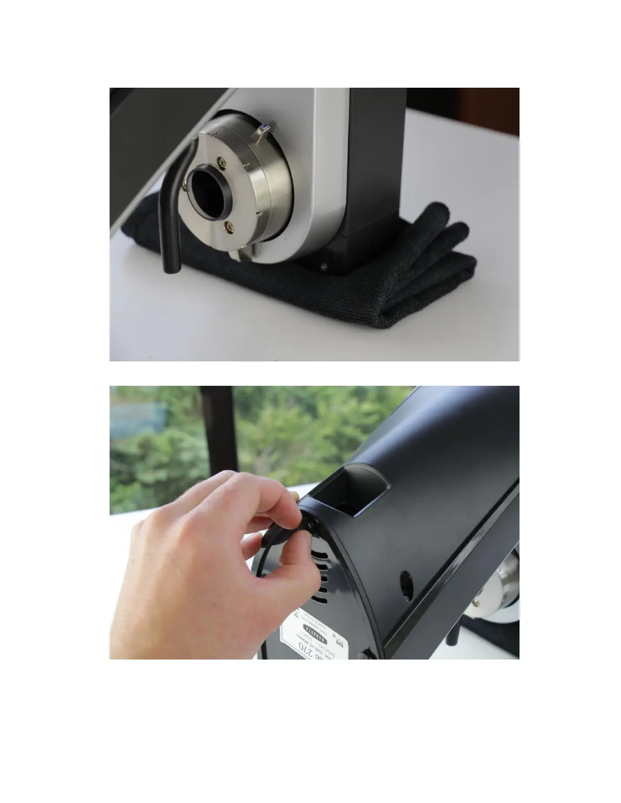 1. Tilt the machine forward on a hand towel, resting the machine on its face