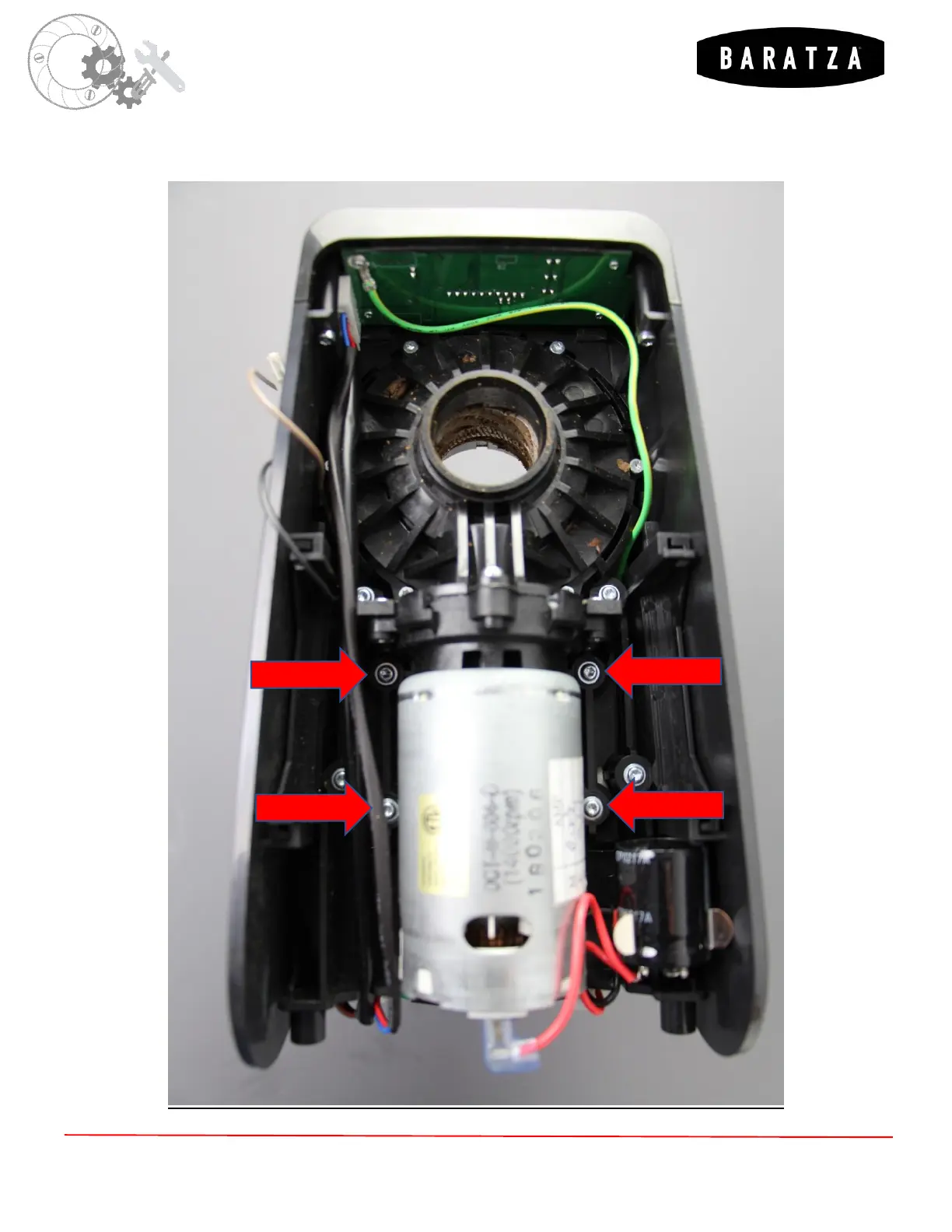 remove the (4) screws indicated below, and lift out to remove the gearbox/motor