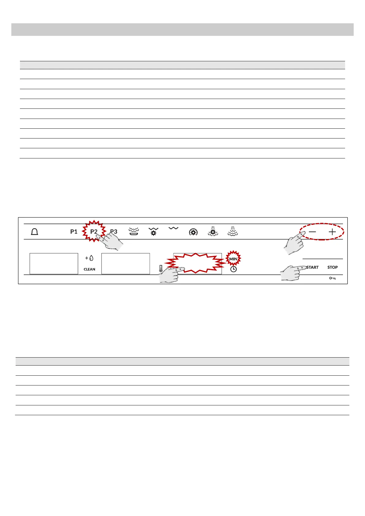 Die folgende Tabelle zeigt die Programme für Gemüse, Fisch und Beilagen: