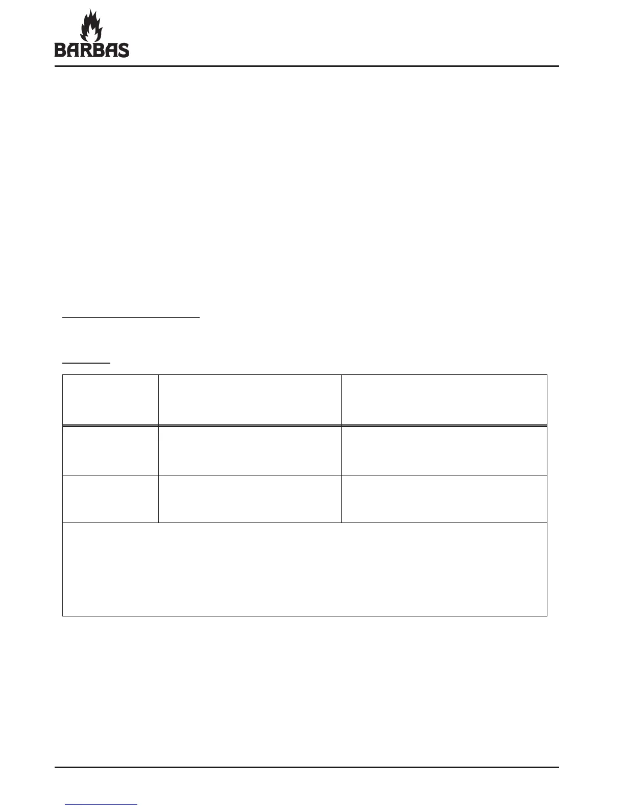 appliance and chimney. BARBAS will not assume liability for damage caused by
