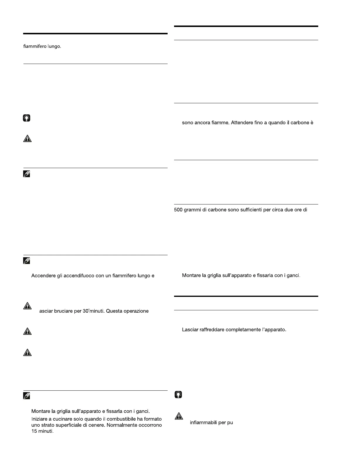 • Non iniziare mai la cottura se nel contenitore del carbone ci