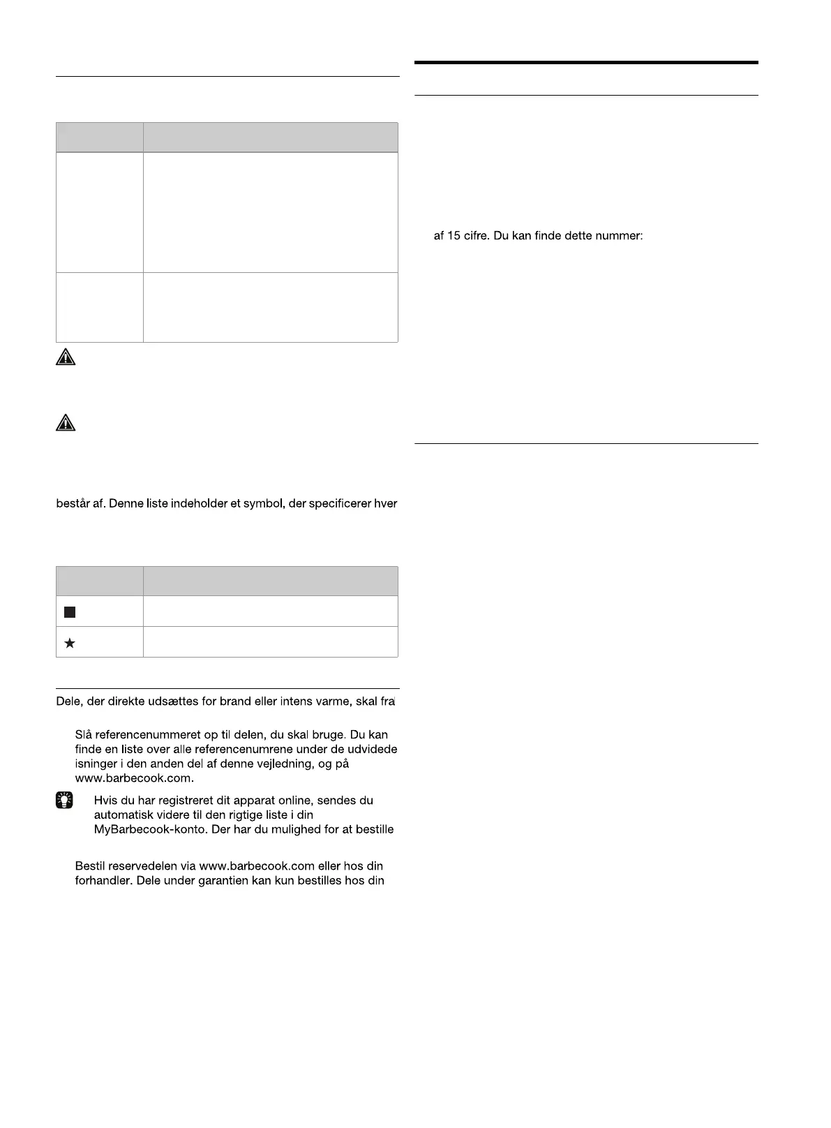 • Barbecook-kvalitetsafdelingen bekræfter, at delene er