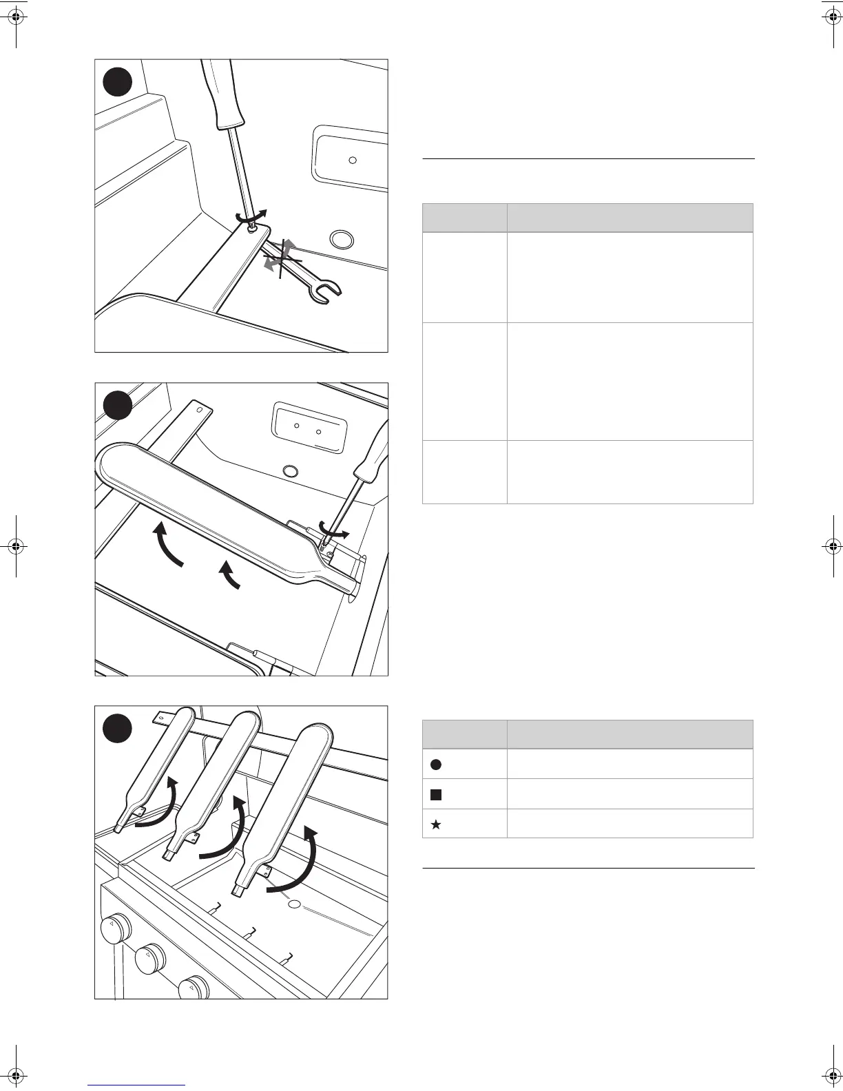• Rengör brännarna och grillgallren, smörj dem med olja och
