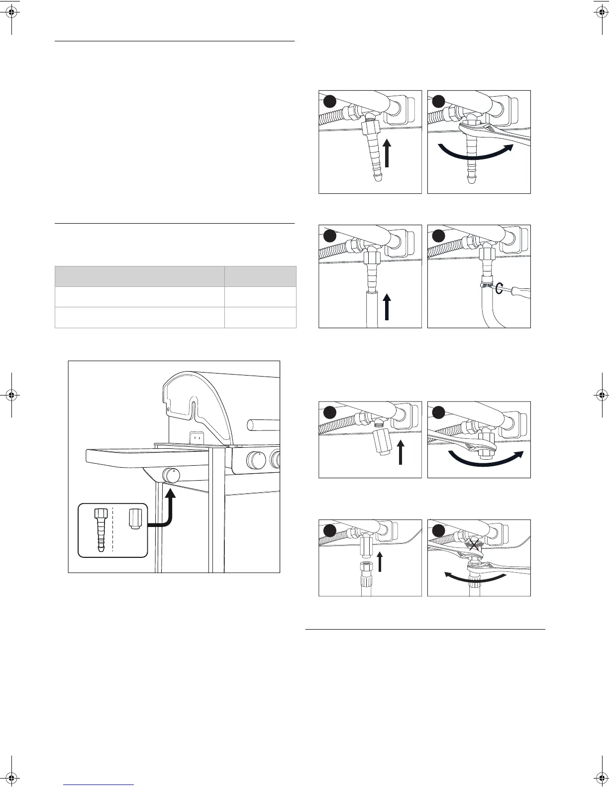 2 Screw the gas hose on the coupling (C) and tighten it with