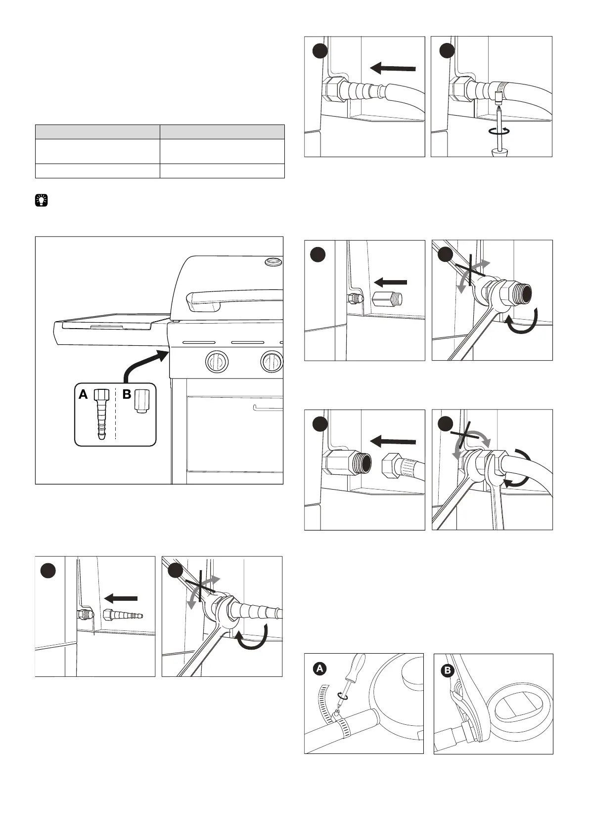 Jotta kaasuletku voidaan liittää laitteeseen, asenna liitin