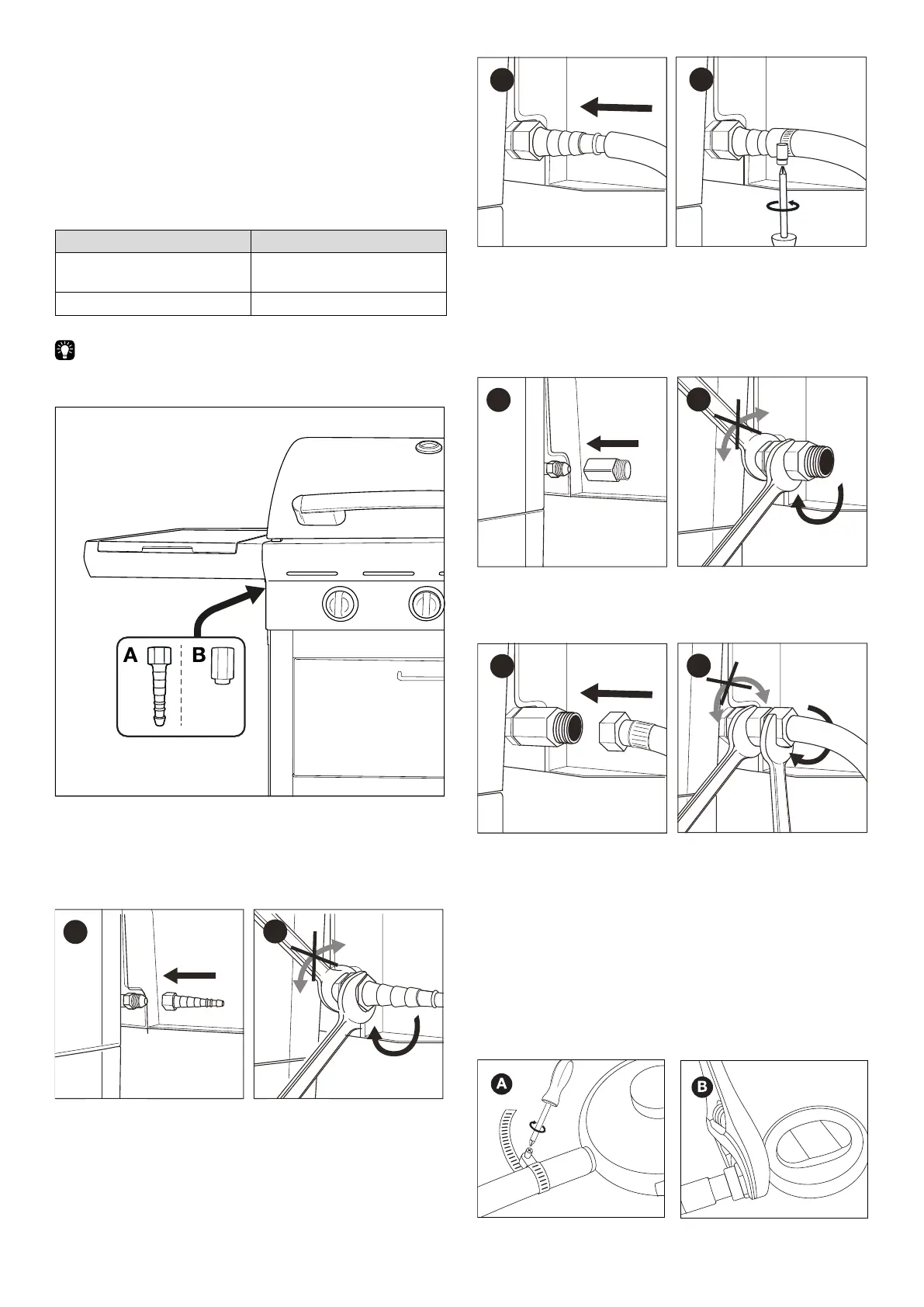 1. Naskrutkujte spojku na plynovú trubicu na spotrebiči (A)