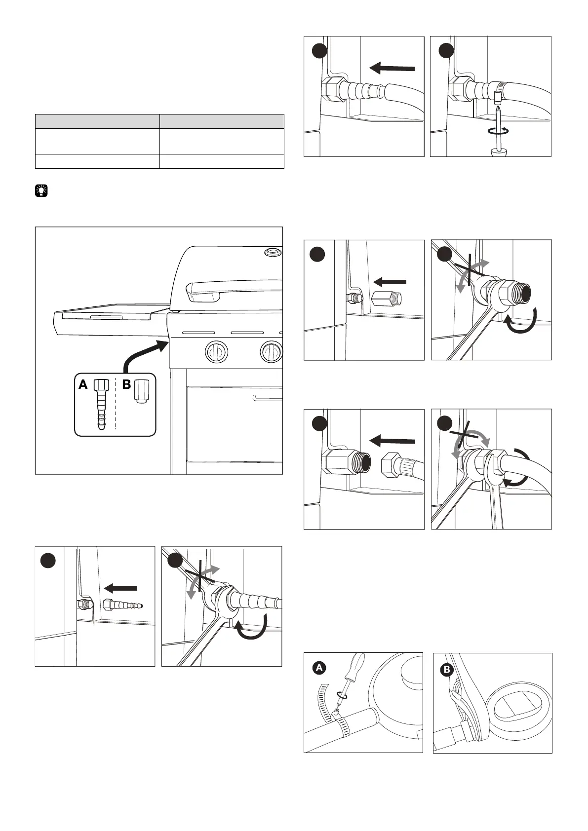 1. pričvrstite spojnicu na plinsko crijevo na proizvodu (A)