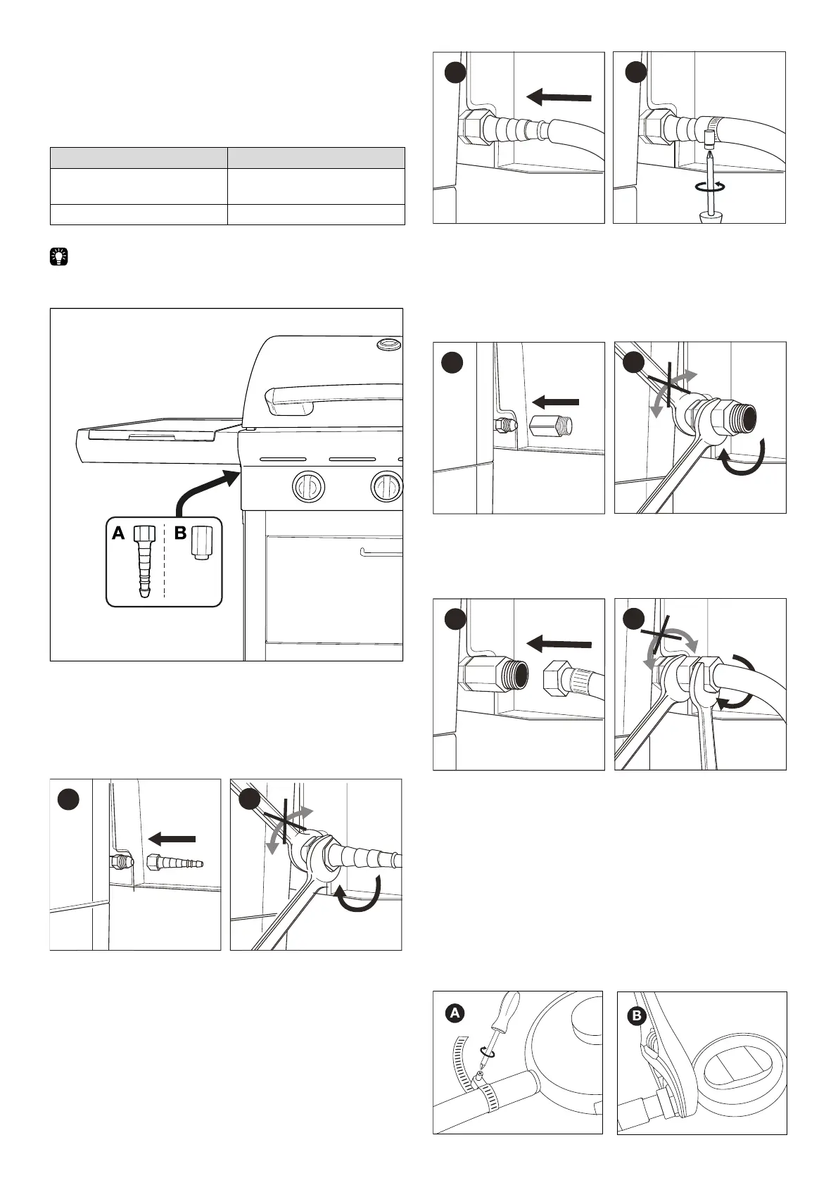 Lai varētu savienot gāzes šļūteni ar grilu, piestipriniet