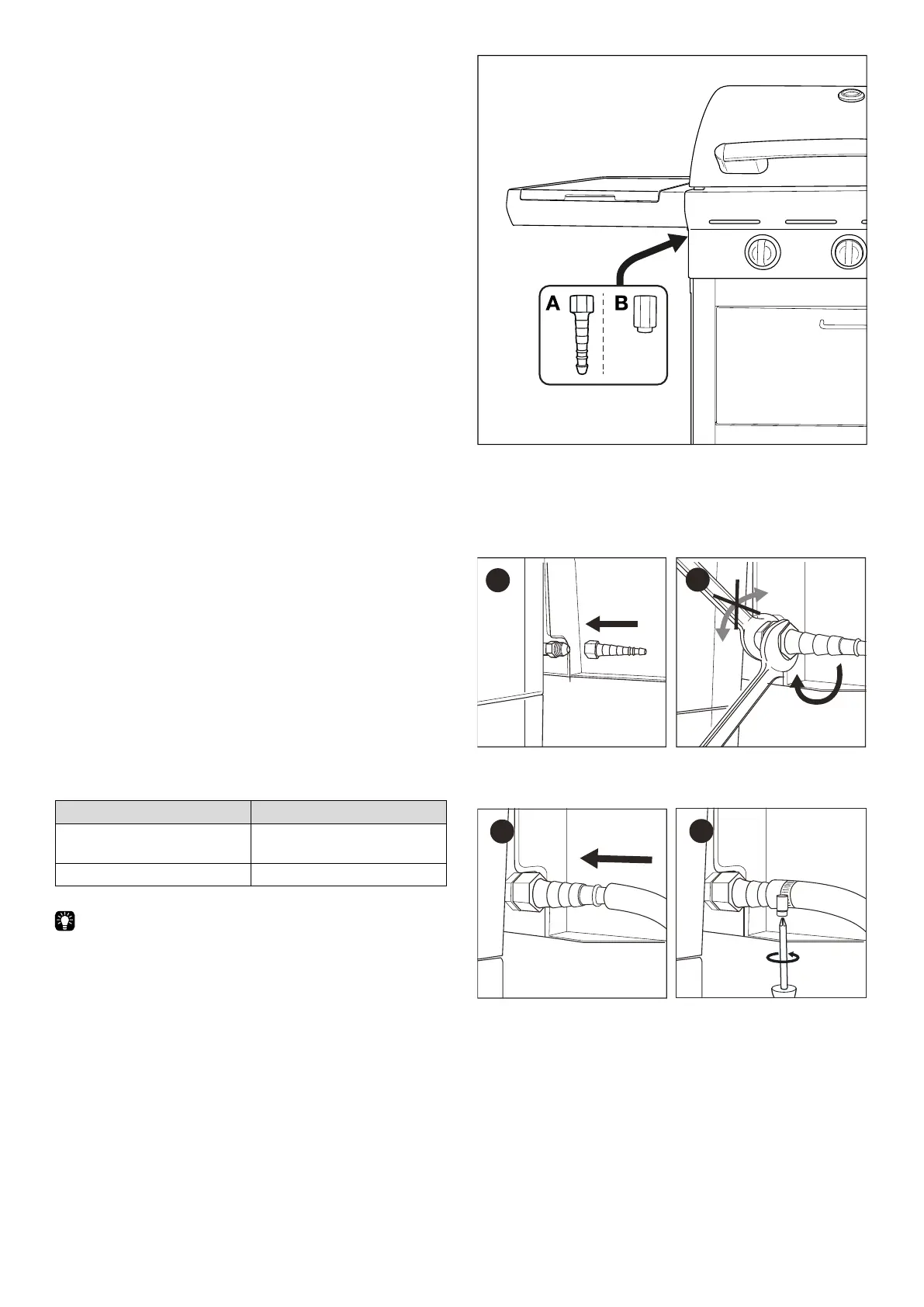 1. Завийте муфата към тръбата за газ на уреда (A)