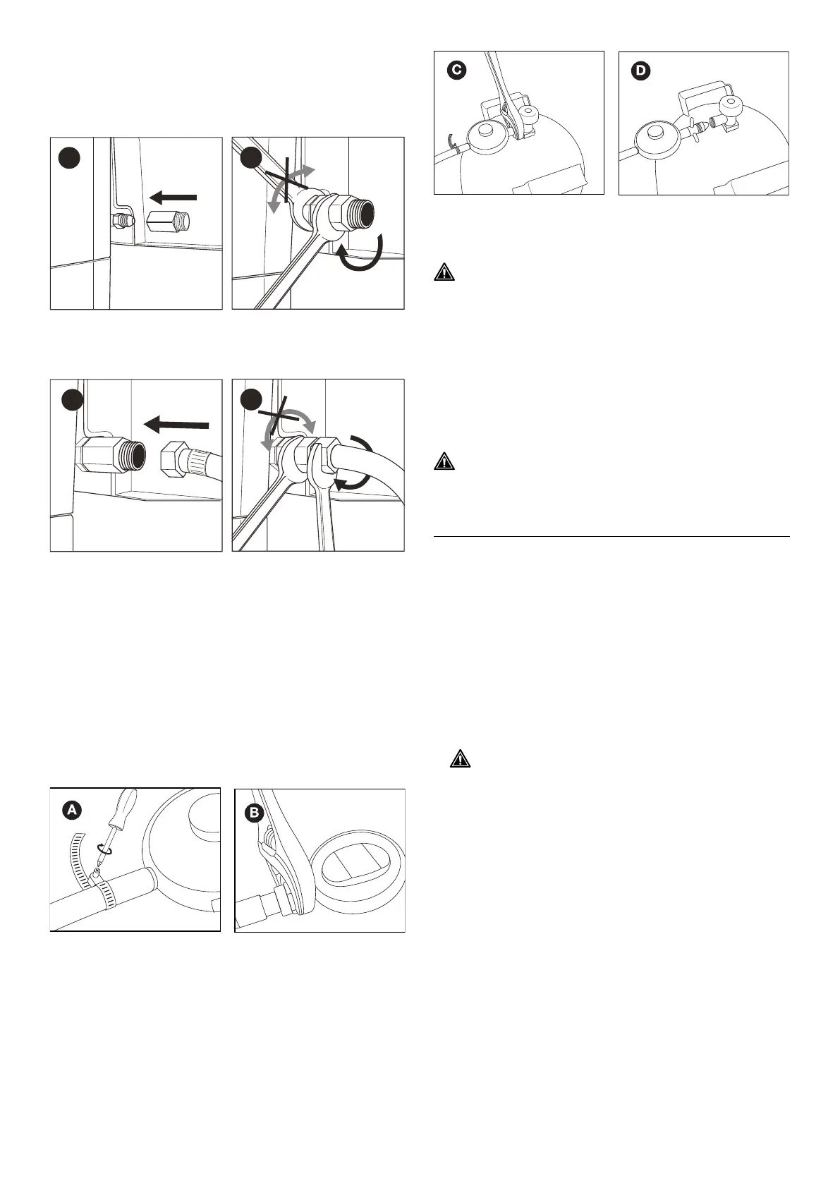 1. Завийте муфата към тръбата за газ на уреда (A)