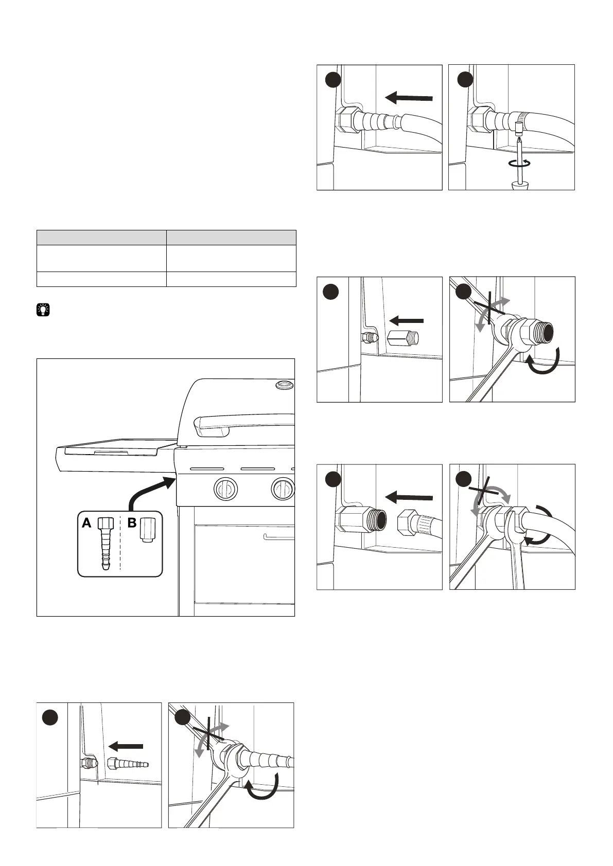 1. Csavarozza fel a csatlakozót a készülék gáztömlőjére (A),