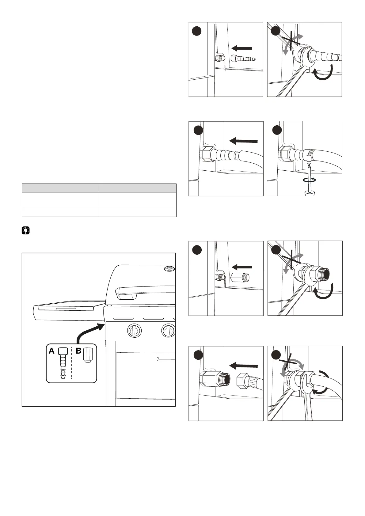 1. Enrosque el manguito en el tubo de gas del aparato (A)