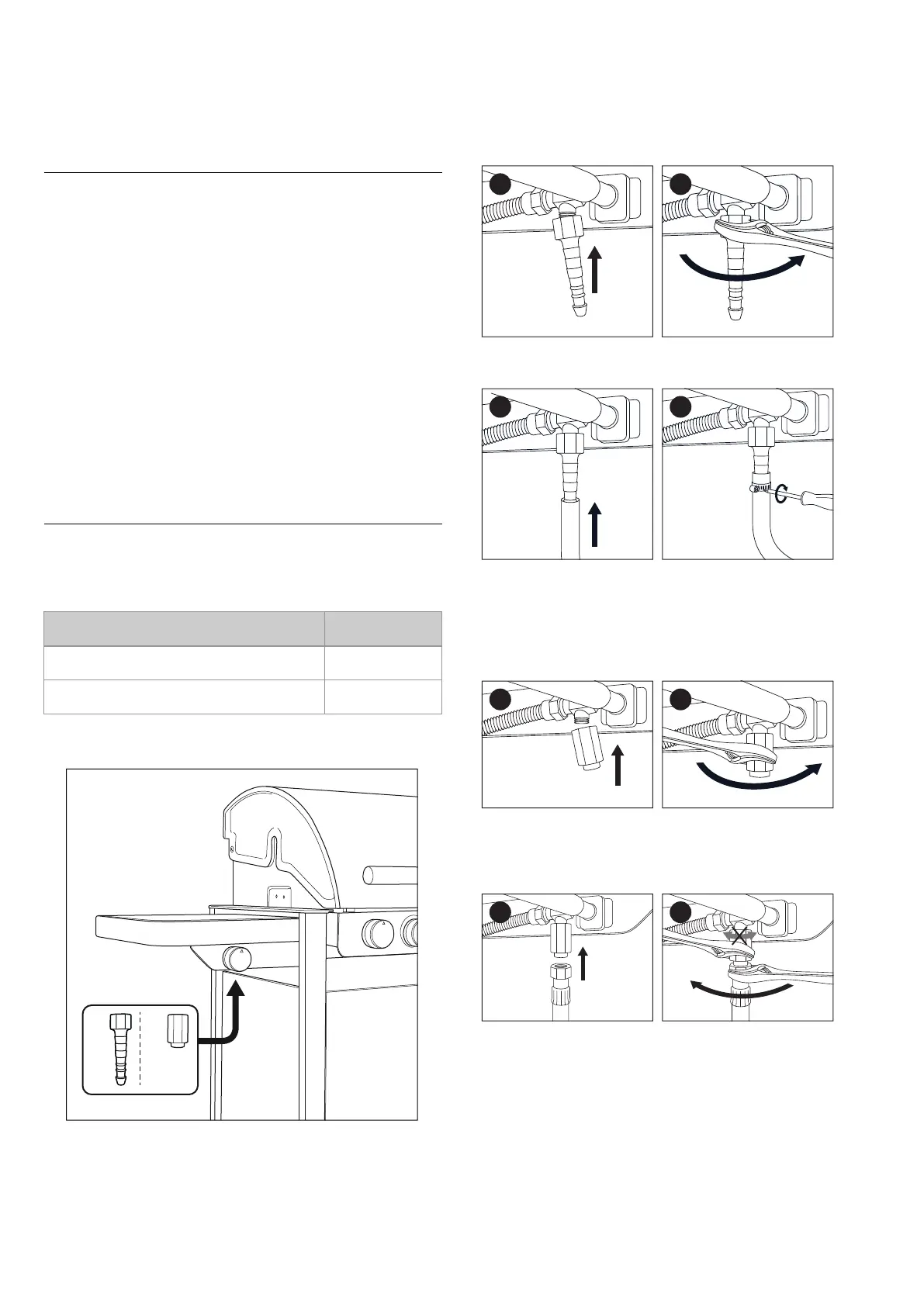 2 Enrosque la manguera de gas en el acoplamiento (C) y