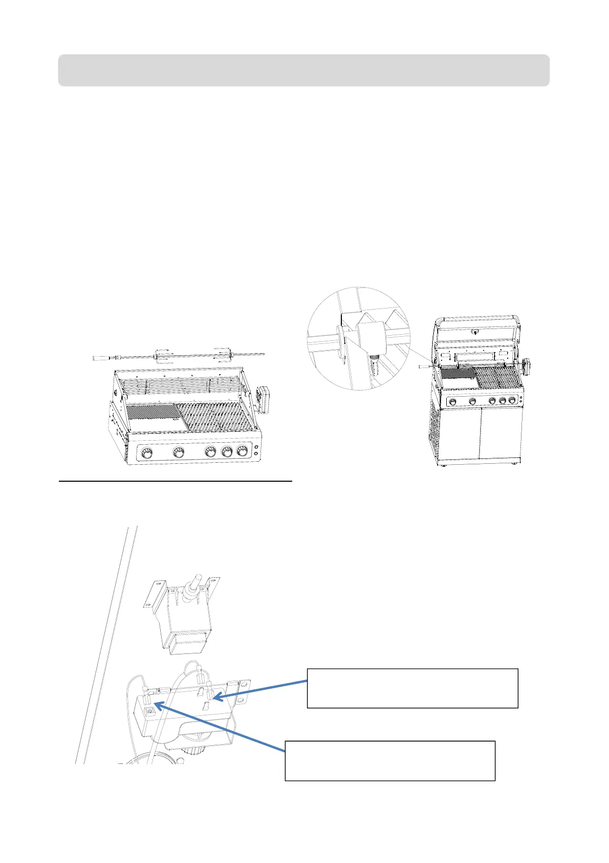 Rotisserie as shown below. The handle should be removed during cooking. The