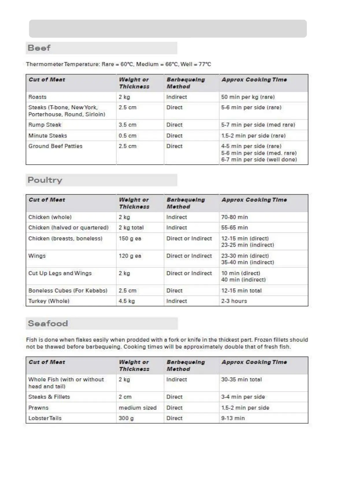 Barbeques Galore BEEFMASTER G4DXBV - Cooking Times