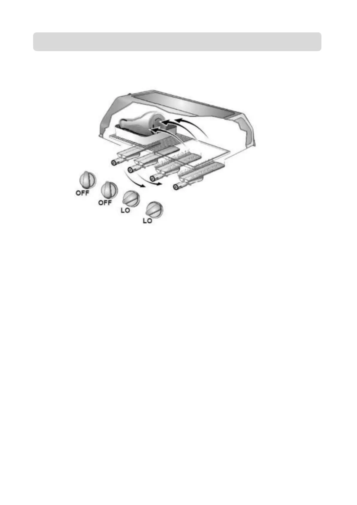 On a 2 burner barbeque, the burner under the grill on LO or HI and the burner under the