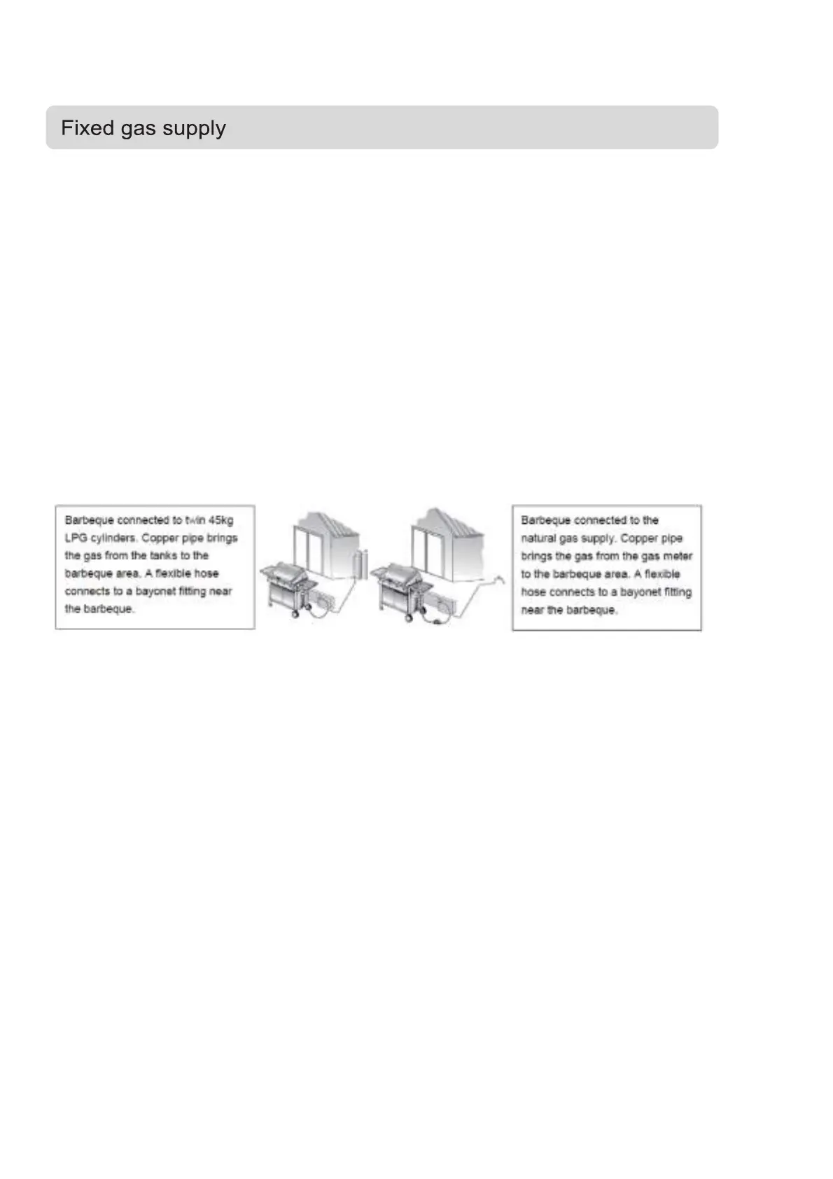 (1) Direct Permanent Piped Connection: Your barbeque may be permanently connected to the