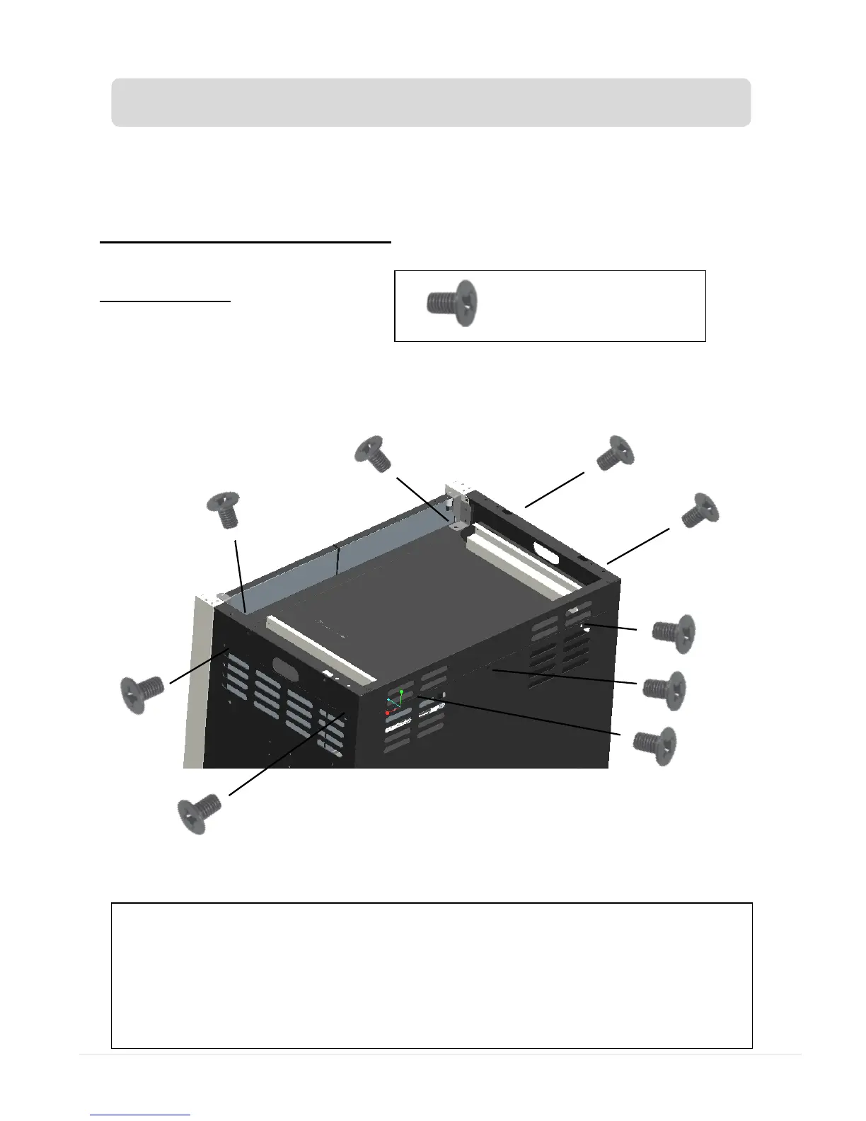 two in the top front corners, 2B has 1 only in front corner). Get all the screws started, and only then