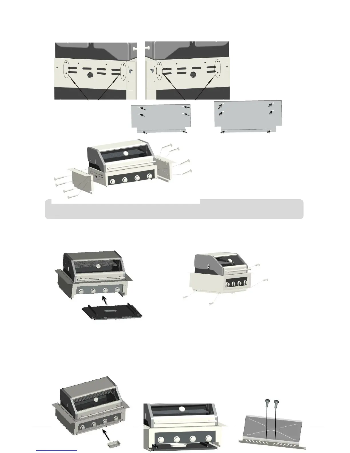 (e) Fit the grease channelling tray front dress piece / handle as shown below. The 4 burner has a