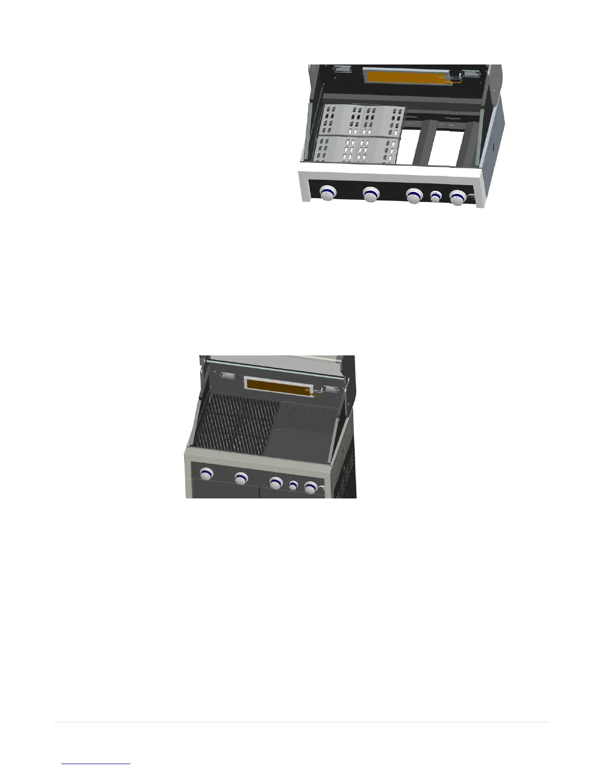 Then place the Hotplate and Cooking Grills into position on the upper ledge as shown below. The