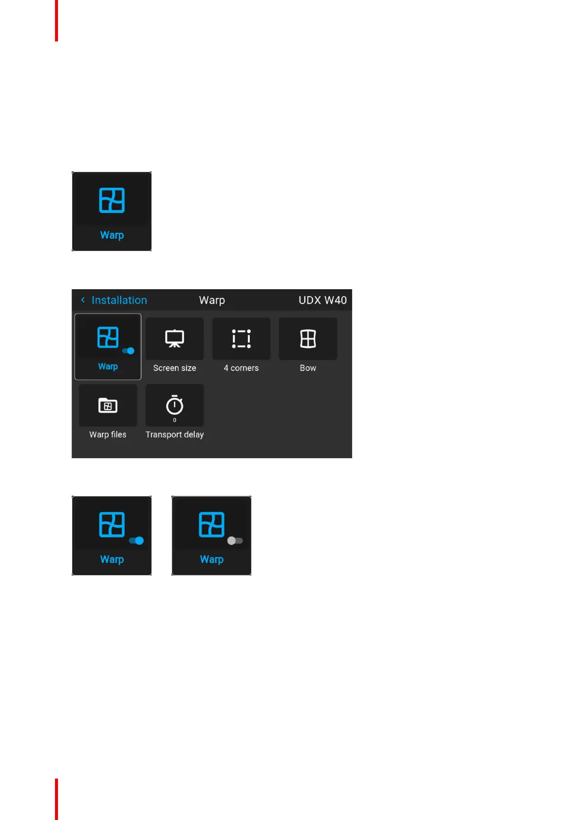 By toggling between on and off the warping functionality can be enabled or disabled.