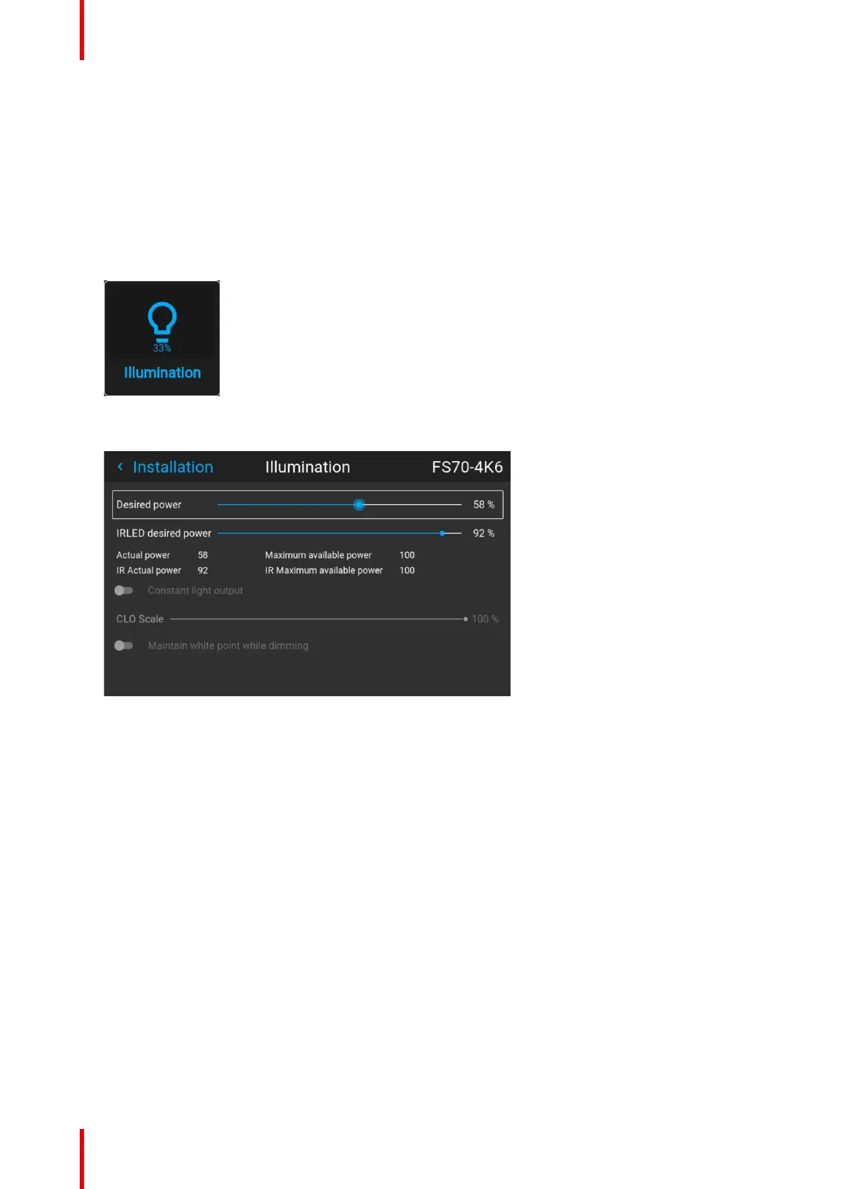 1. Select the menu Installation / Illumination