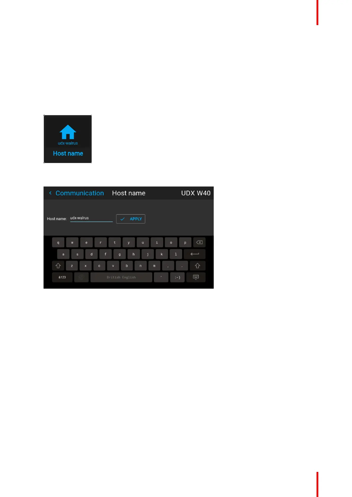 4. Press the OK key, or press the enter icon to confirm the typed name. Click Apply to update the host name.