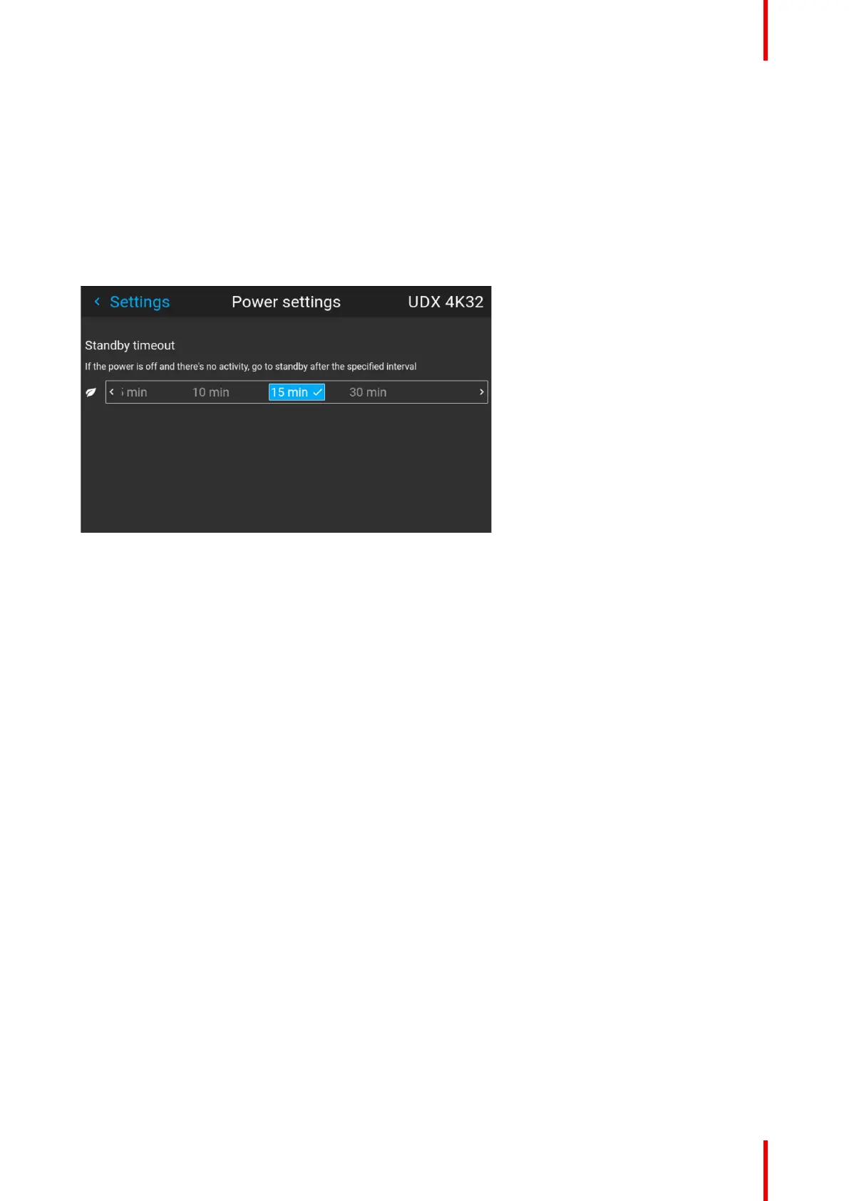 In the power settings menu, the standby timeout can be selected.