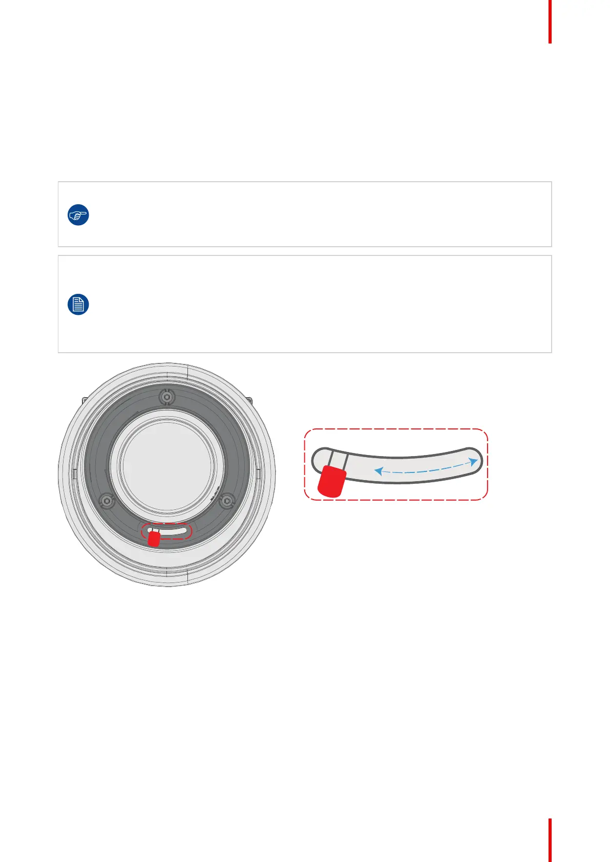 2. Verify that the lens release lever is in its default position at the far left of the slide, as illustrated.