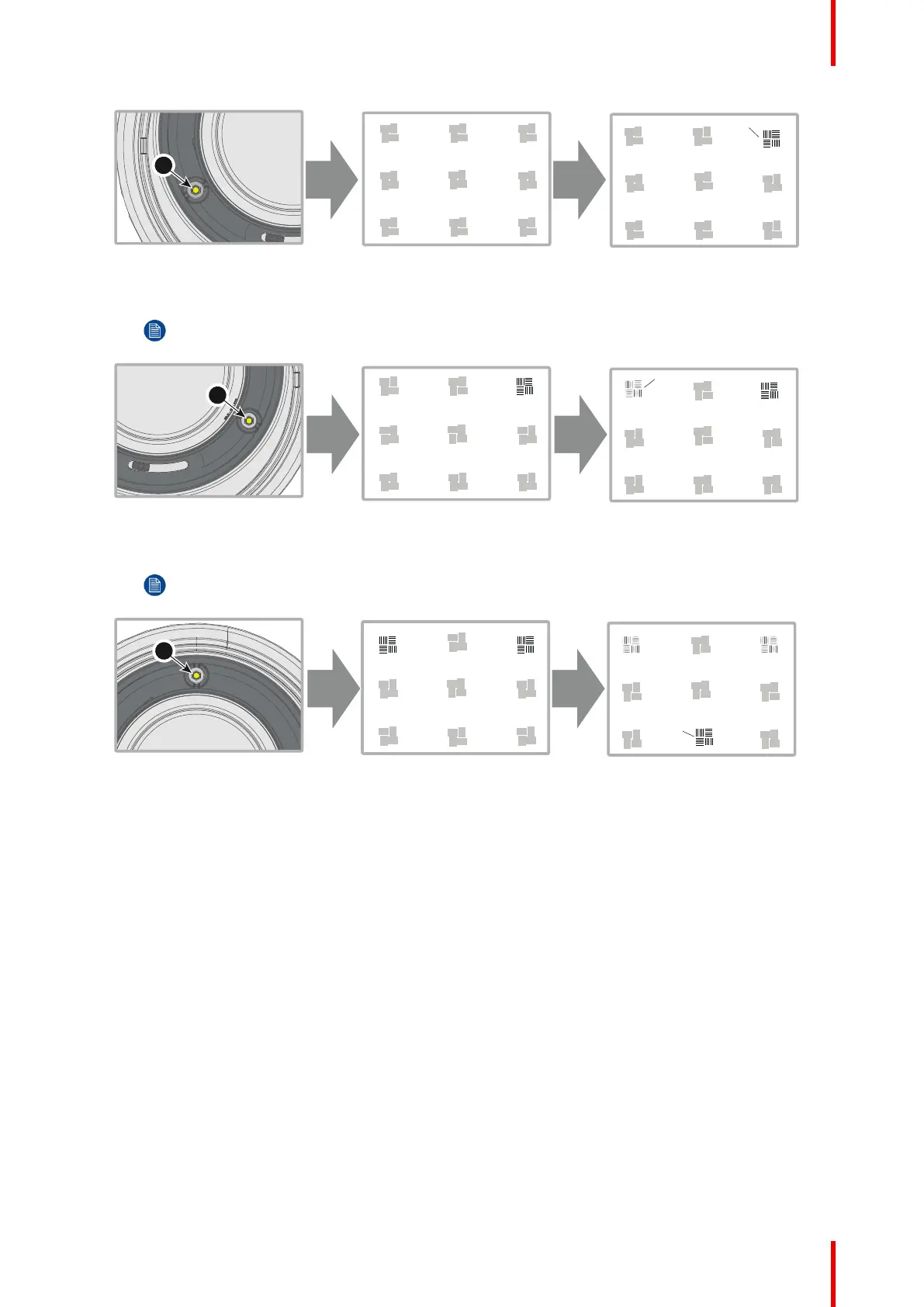 5. Continue adjusting the screws one at a time until the test image is uniformly sharp across all areas of the