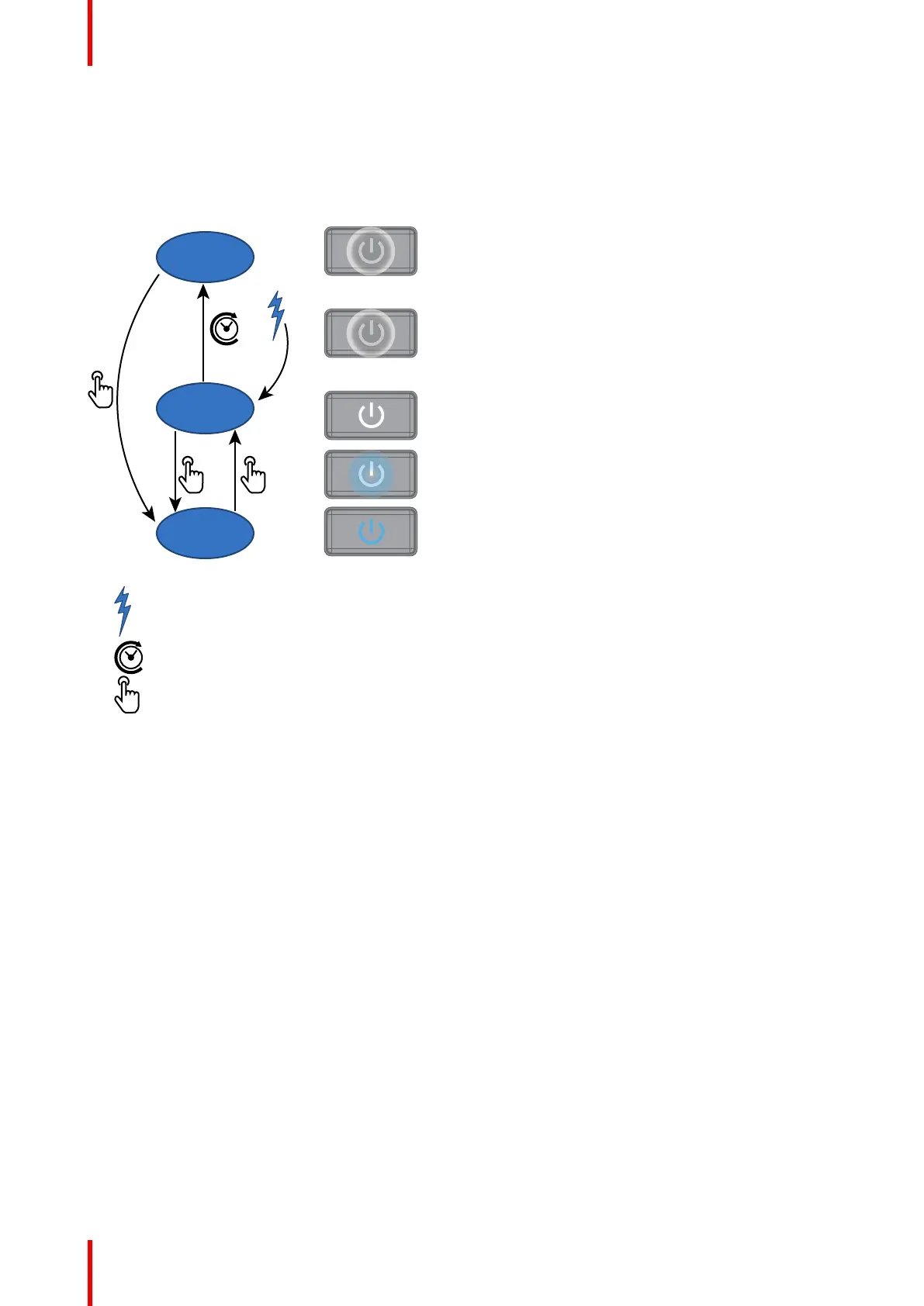 This diagram shows all modes available on the projector (unplug, ON, READY, ECO), and the actions