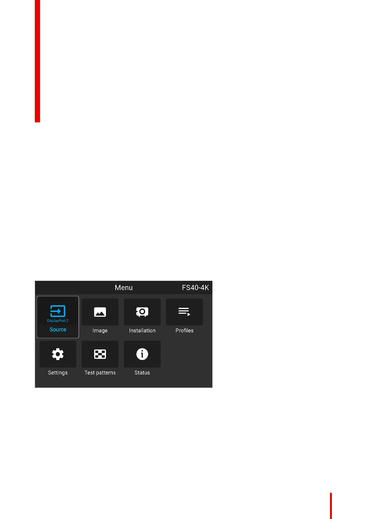This menu is used to select, review and configure sources into the projector. Enables either via the source